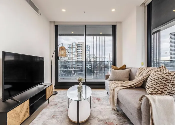 Gasten kunnen verblijven in Sunlit & Sleek Condo In Lively St Kilda Melbourne van 71 m² wanneer ze het woongebied van Melbourne bezoeken. Het biedt accommodatie met een privéparkeerplaats ter plekke en Wi-Fi.